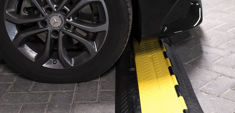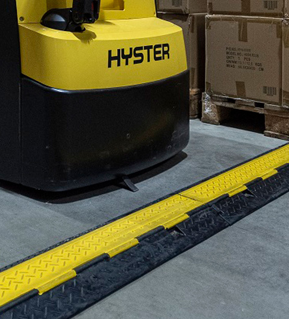 - Logistikumgebungen – Leiten Sie Kabel sicher über Gänge oder Fahrwege