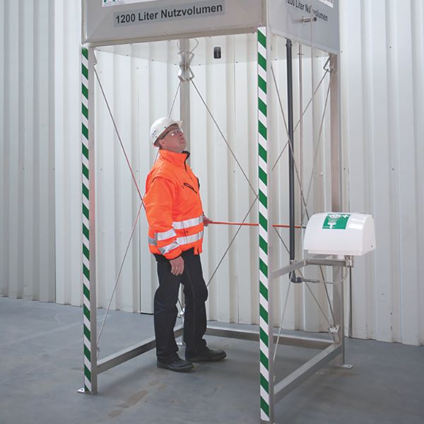 - Vollständige Dekontamination - Spült gefährliche Stoffe direkt vom gesamten Körper ab